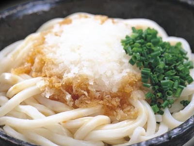 釜玉うどん(1人分) うどん1玉・卵1個・刻みねぎ適量・讃岐うどん醤油 (1)器をあたためておく (2)茹で上がったうどんを器に入れ、卵を割りいれ素早くかき混ぜる。