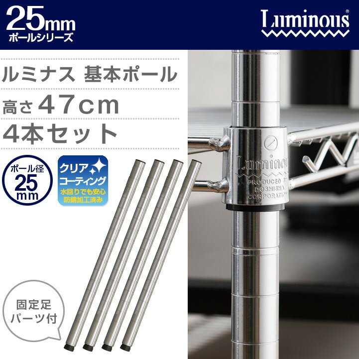 【基本ポールです※延長ポールではありません】 スチールラック パーツ ラック ポール スチール メタル ラック パーツ 高さ50モデル ポール径25mm メタルシェルフ パーツ luminous ルミナス 純正品 基本ポール 4本セット 25P050*4
